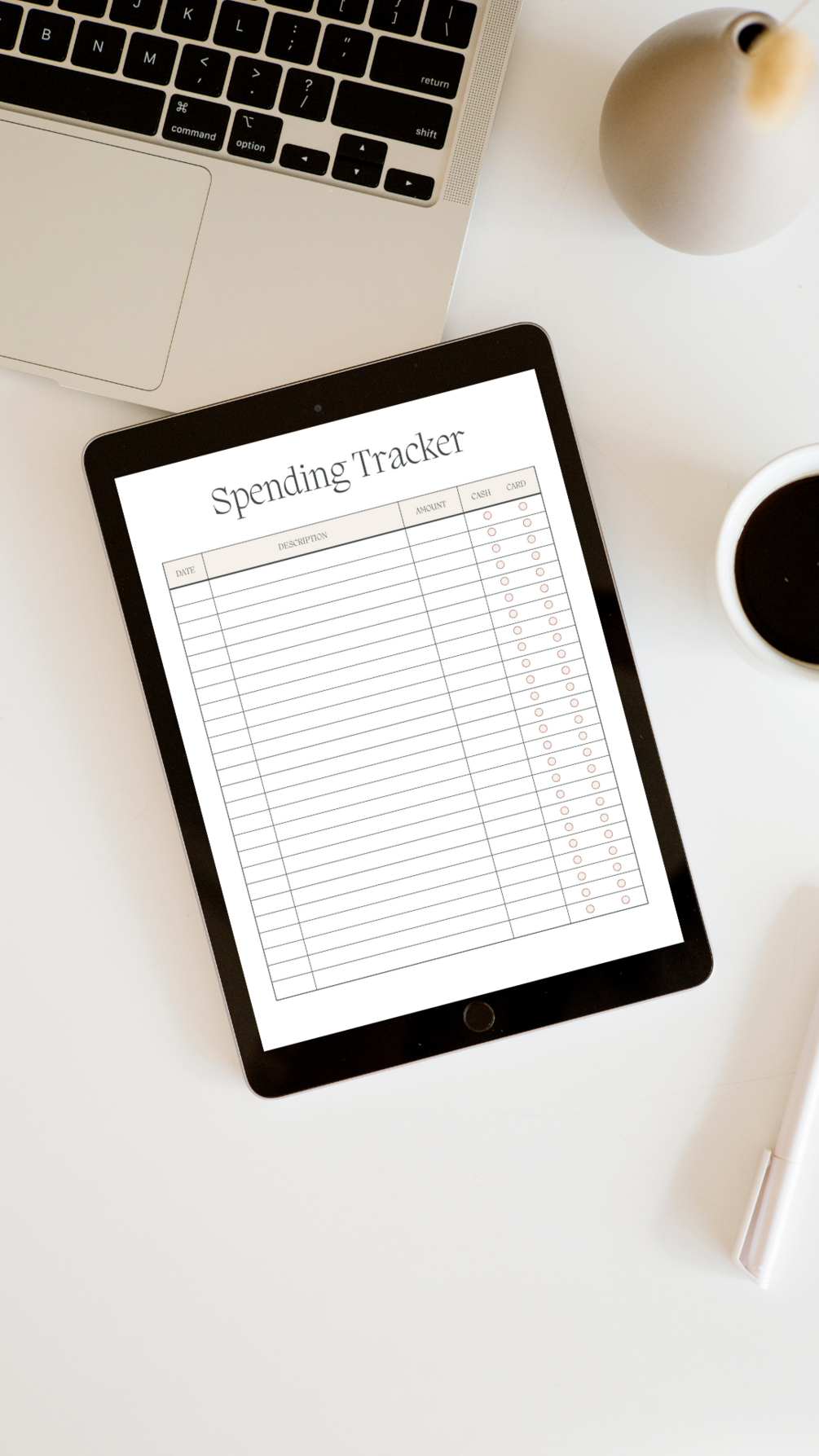 Minimal digital planner for expense tracking.